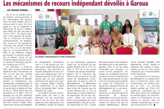 Cameroun-Mécanisme de recours indépendant du Fonds vert pour le climat : L’ONG JVE Cameroun mène le plaidoyer