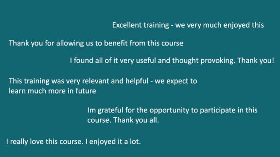 حصل جميع المشاركين الذين أكملوا بنجاح الوحدات عبر الإنترنت وحضروا جميع الجلسات المباشرة على شهادة خاصة موقعة من آلية الإنصاف المستقلة (IRM) التابعة ل GCF، ومعهد بناء الإجماع (CBI)، وبرنامج النزاعات العامة بين هارفارد ومعهد ماساتشوستس للتكنولوجيا. بالإضافة إلى ذلك ، ساعدت ورش العمل أيضا في تشكيل مجتمع من الممارسة بين المشاركين ، وهي مبادرة تفخر IRM بإطلاقها وتريد تطويرها بشكل أكبر خلال السنوات القادمة. الهدف النهائي هو إنشاء منصة حيث يمكن للممارسين من مختلف المستويات ومن مختلف المجالات تبادل الخبرات والدروس المستفادة ، وكذلك الشعور بالانتماء عند إقامة علاقات جديدة. ولذلك، فإن جهود بناء القدرات التي تبذلها إدارة الموارد البشرية ليست بأي حال من الأحوال في نهايتها، فقد كانت هذه مجرد بداية لرحلة مثيرة مع العديد من الجوانب القادمة، بما في ذلك "التدريب عبر الإنترنت 2.0" لآليات إدارة الموارد الوراثية في GCFفي كيانات الوصول المباشر في عام 2021.